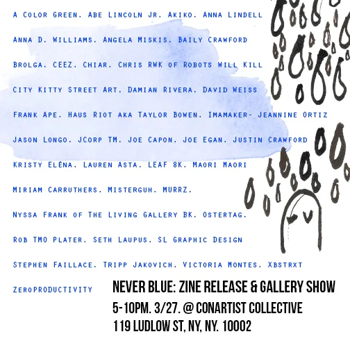 FEATURED NEVER BLUE ZINE & GROUP SHOW ARTISTS - MARCH 27, 2016: